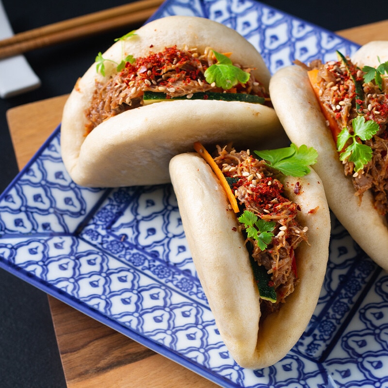 Baos são pãezinhos cozidos no vapor originários do sul da China, macios e fofinhos, que fazem parte da culinária tradicional asiática há décadas. Em 2026, consolidam-se como tendência em versão mini, pois permitem apresentações criativas e visualmente atraentes, brincando com cores, preenchimentos e texturas. Também são servidos com carne de porco ralado, frango marinado ou legumes salteados, pois são transformados em doces com frutas, creme de chocolate ou leite condensado.