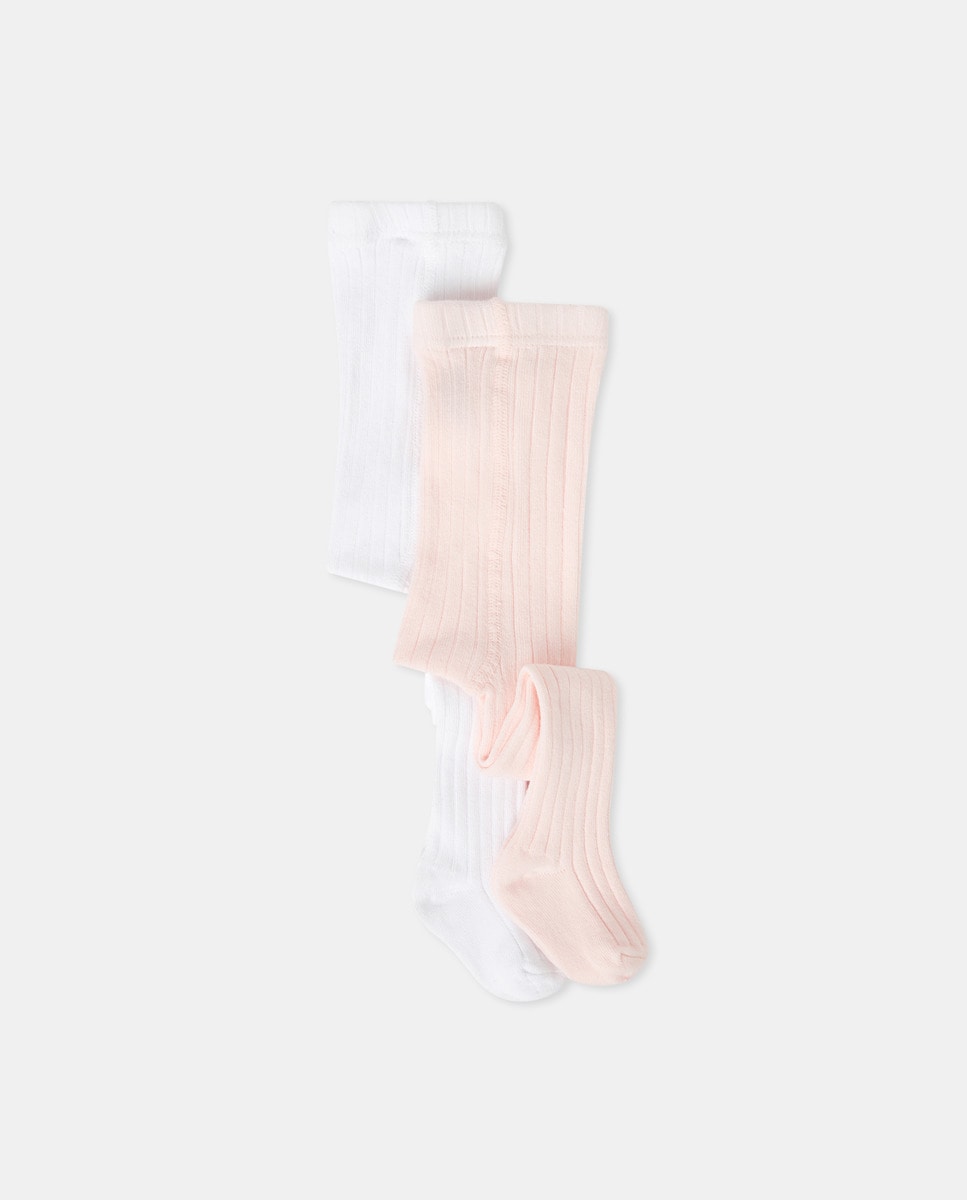 • Imagem 0 de Pack de 2 Collants Canelados Lisos de Bebé