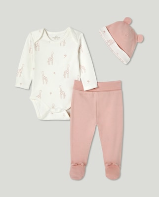 Conjunto de Body, Calças com Pés e Gorro de Bebé com Estampado de Fantasia