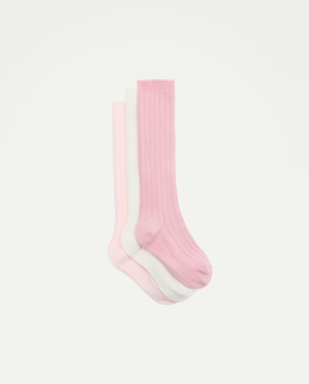 Pack de 3 Pares de Meias Altas Caneladas Lisas de Bebé