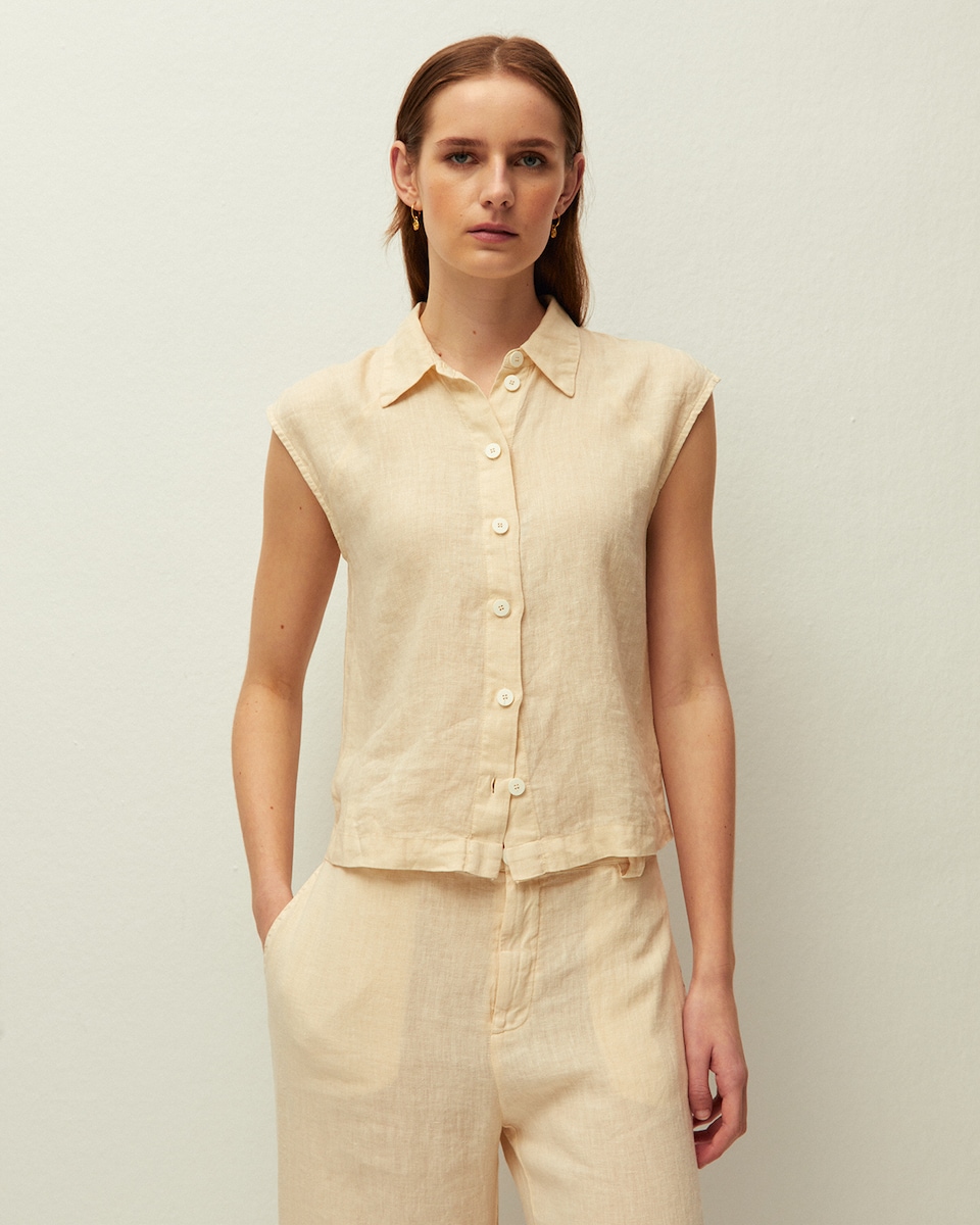 Camisa em Linho com Gola Tipo Camisa e Manga Curta