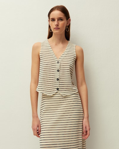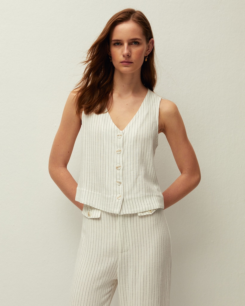 Colete em Tencel Às Riscas com Decote em V