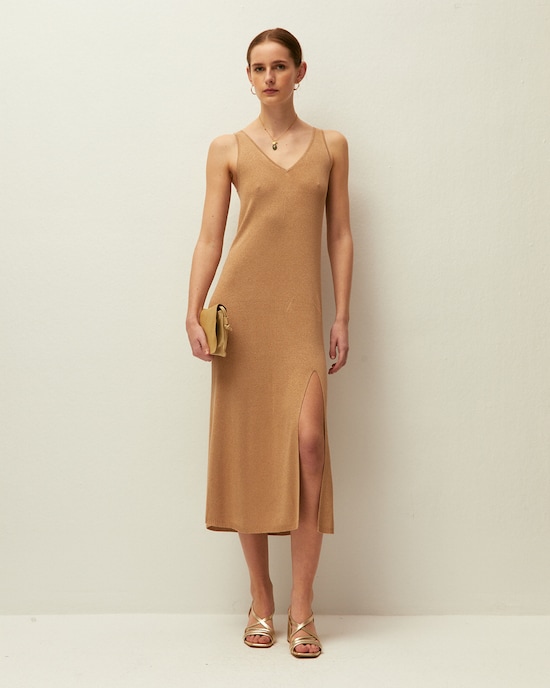 Vestido Comprido de Malha com Gola em V e Alças
