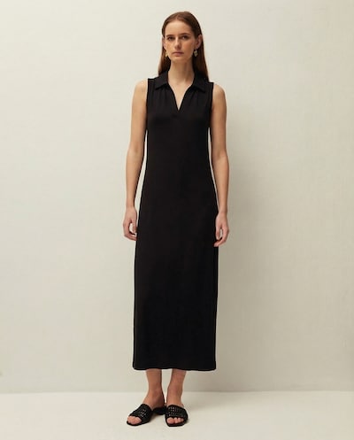 Vestido Comprido com Gola Redonda Fechada e Alças