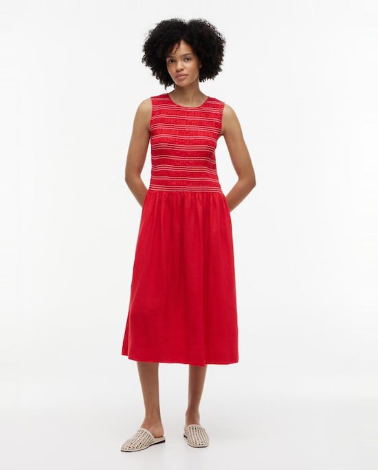 Vestido Midi em Mistura de Linho e Viscose sem Mangas