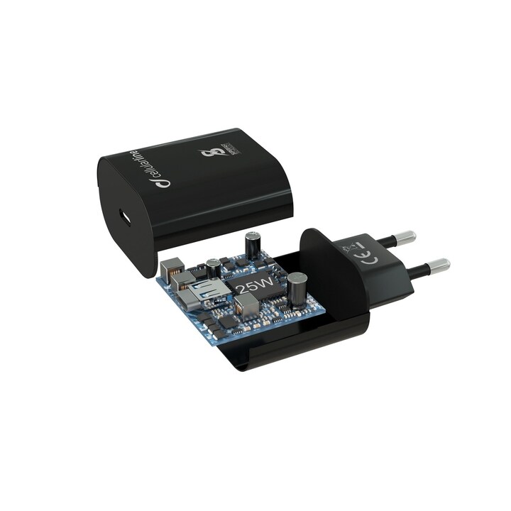 USB-C SUPER FAST CHARGER 25W é o carregador de rede ideal para carregar em velocidade máxima e com total segurança equipamentos compatíveis com a tecnologia de carregamento Super Fast Charge 25W e equipados com entrada USB-C.