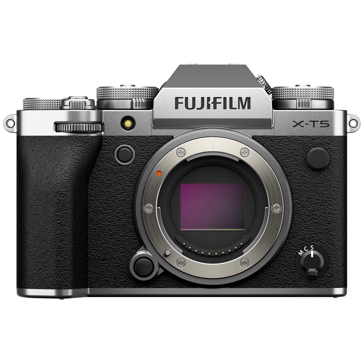 A câmara Fujifilm X-T5 é um modelo mirrorless com sensor APS-C CMOS de quinta geração X-Trans CMOS 5 HS, que oferece uma resolução total de 40,2 megapíxeis. Está equipada com o processador X-Processor 5 e apresenta um corpo selado para resistir às intempéries. Permite a captação de fotografias e vídeo, com gravação interna em cartão SD UHS-II em formato DCI 4K a 60 fotogramas por segundo, em cor de 10 bits 4:2:2. Inclui funções avançadas de deteção de sujeitos, como animais, aves, veículos e comboios, bem como deteção facial e ocular, distinguindo entre olho direito e esquerdo. Dispõe de um ecrã LCD de 3,0 polegadas e o seu peso aproximado é de 557 gramas.