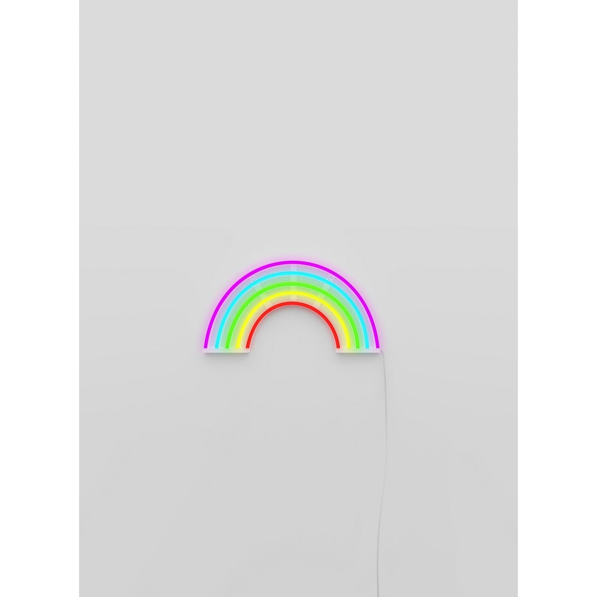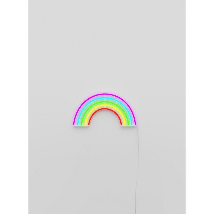 Fita LED com a forma de um arco-íris em várias cores. Inclui um cabo USB de 1.8m para ligar a um carregador AC ou computador, ou alternativamente tem uma caixa onde se podem colocar 3 pilhas AA, não incluídas. Dimensões 30 x 16 cm, 0.37A/1.86W, resistência à humidade IP20.