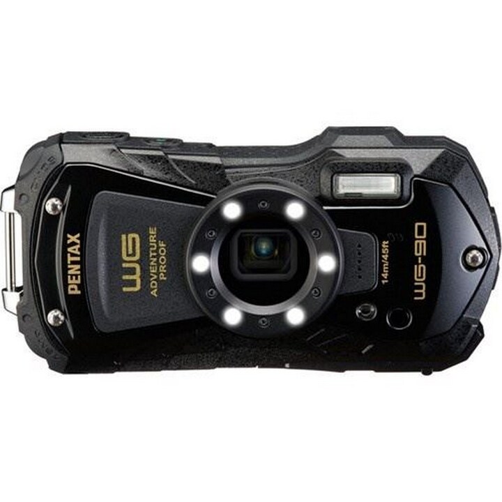 A Pentax WG-90 é uma câmara digital compacta e robusta, com um excelente desempenho à prova de água e de choque, e uma série de funções de fotografia fáceis de utilizar num corpo compacto e leve, ideal para grandes aventuras.