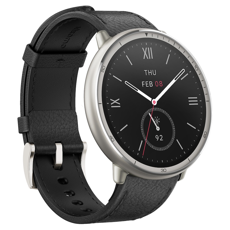 Um equilíbrio perfeito entre versatilidade e sofisticação. Fabricado em aço inoxidável, cristal de safira (um material tão durável que só os diamantes o podem riscar), bracelete em pele e um ecrã AMOLED de 2000 nits para desfrutar plenamente de todos os seus dados.