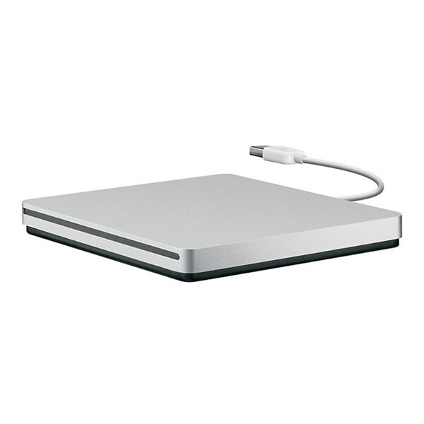 Com a Apple USB SuperDrive, nunca mais se preocupará em perder os seus cabos. Liga-se ao seu MacBook Pro com ecrã Retina, MacBook Air ou Mac mini com um cabo USB simples e integrado. Além disso, não necessita de um adaptador de corrente separado e funciona quer o Mac esteja ligado à corrente ou à bateria.