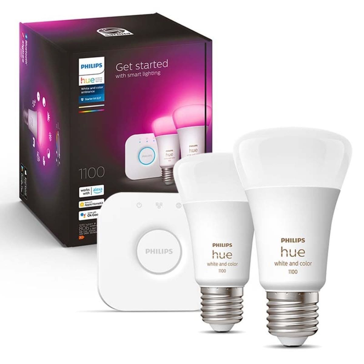 Kit inicial: 2 lâmpadas inteligentes E27 (1100)