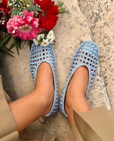 Sabrinas Rasas com Crochet Entrançado À Mão