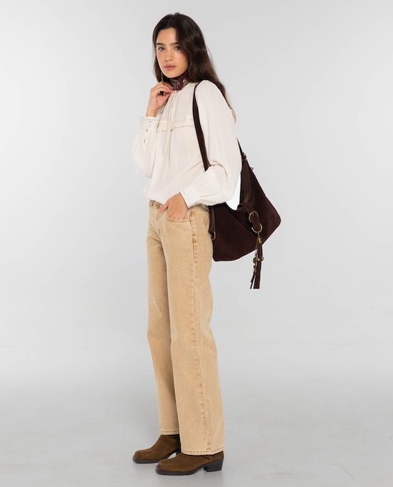 Calças Jeans com Corte a Direito e Apliques Metálicos