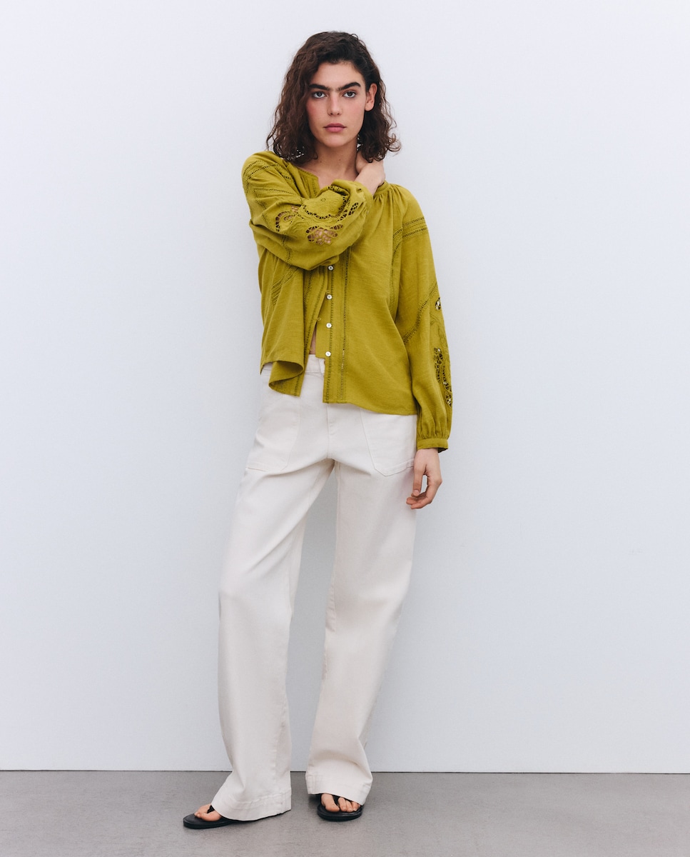 Blusa de manga comprida com bordado