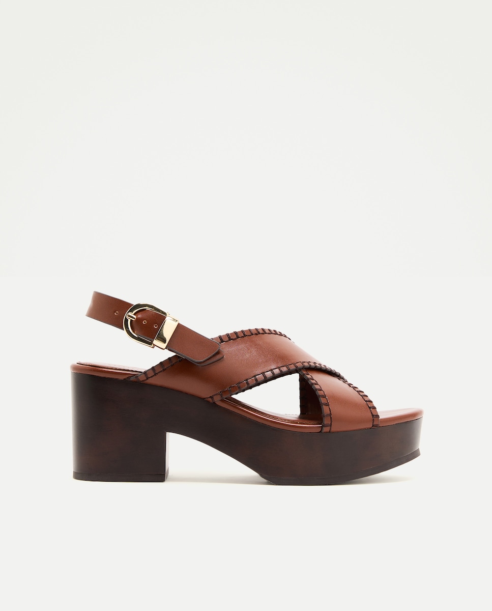 Sandálias de Salto com Bloco, Tiras Cruzadas e Fivela