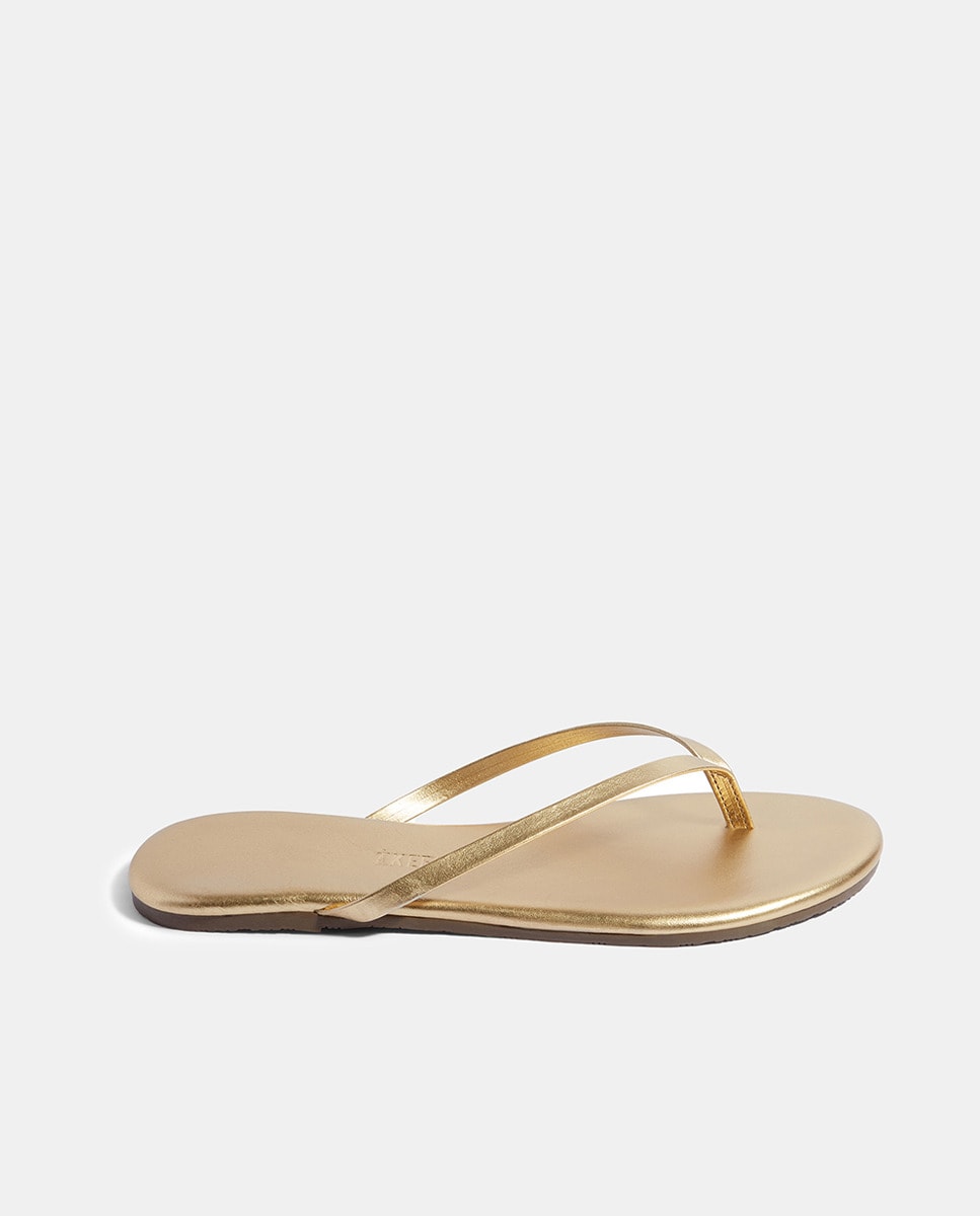 Sandálias Rasas em Pele Metalizada