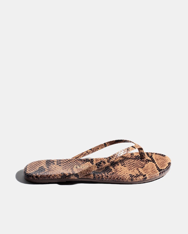 Sandálias Rasas em Pele com Animal Print de Serpente