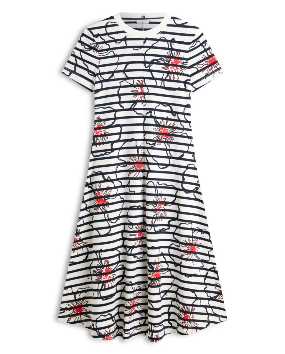 Vestido Midi às Riscas com Estampado Floral Gráfico
