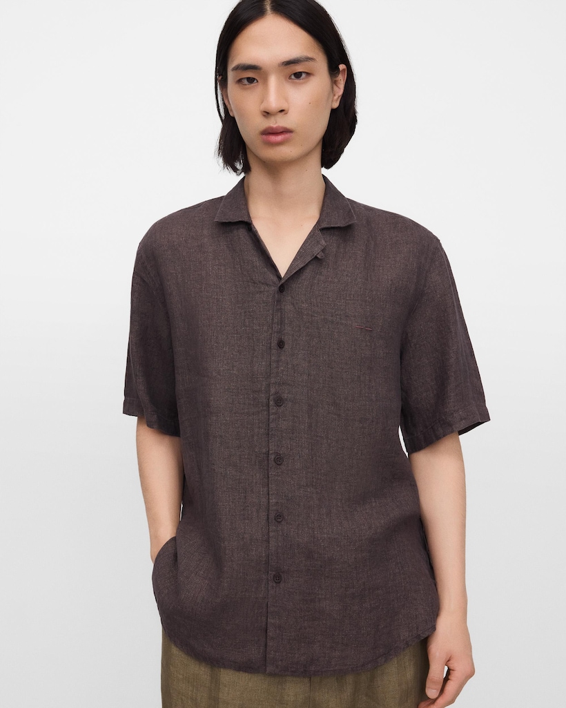 Camisa de Linho com Gola Bowling em Linho Europeu