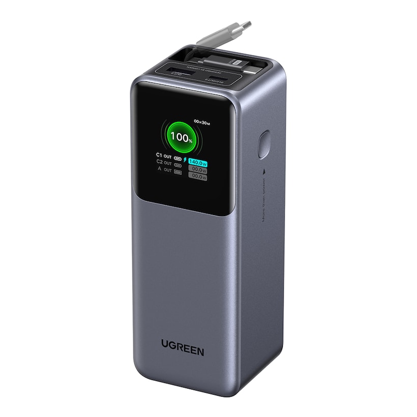 Power Bank Ugreen 165W, 20000mAh, com Cabo USB-C Retrátil