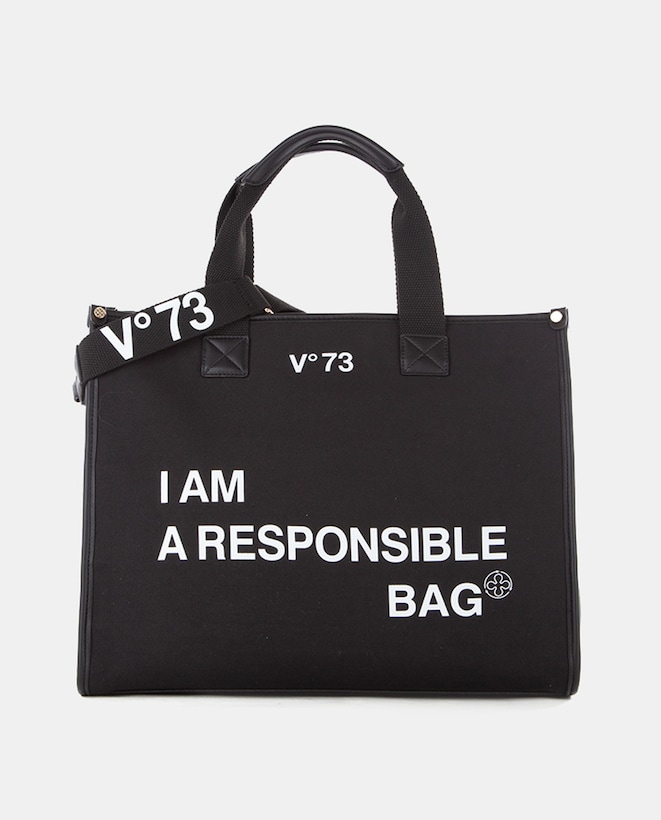 Mala Shopper Média com Estampado em Contraste e em Lona