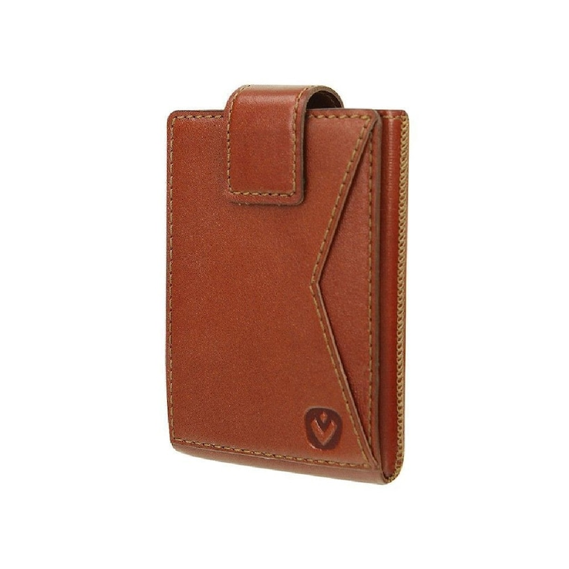 Porta Cartões Aluminio Revestido a Pele com Duplo Compartimento - Cognac