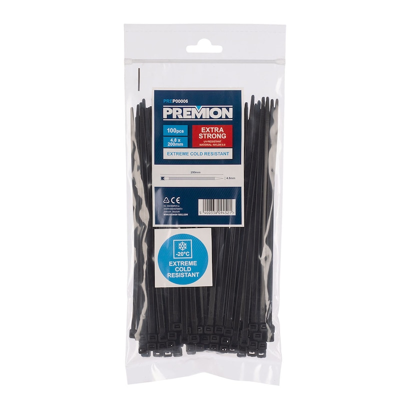 Abraçadeiras de Nylon 4,8 x 200 mm Resistentes ao Frio Extremo 100 Unid. - Preto