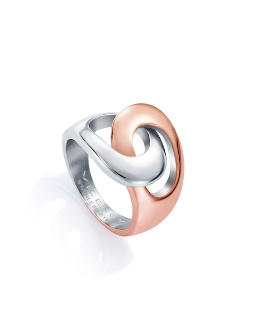 Anel Air de Aço Bicolor e Motivo Entrelaçado