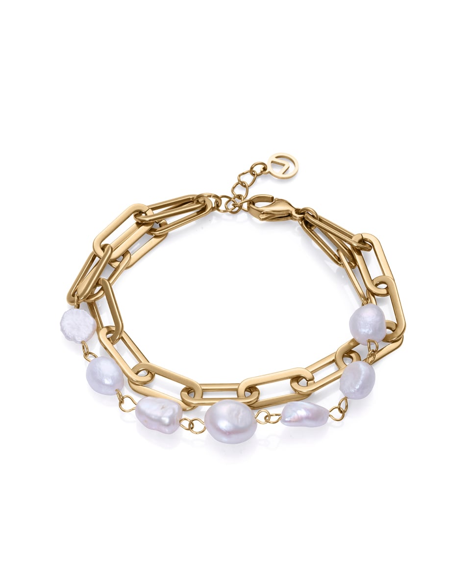 Pulseira de Elos Chic de Aço em Ip Dourado e Pérola Cultivada