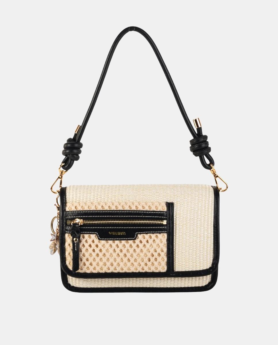 NovoVolumMala de Mão Média em Ráfia e Polipele com Alça de Tiracolo Ajustável e Bolso ExteriorAdicionar