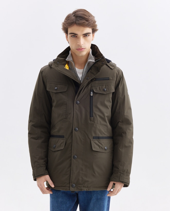 Casacão com Bolsos Inclinados e Capuz Desmontável