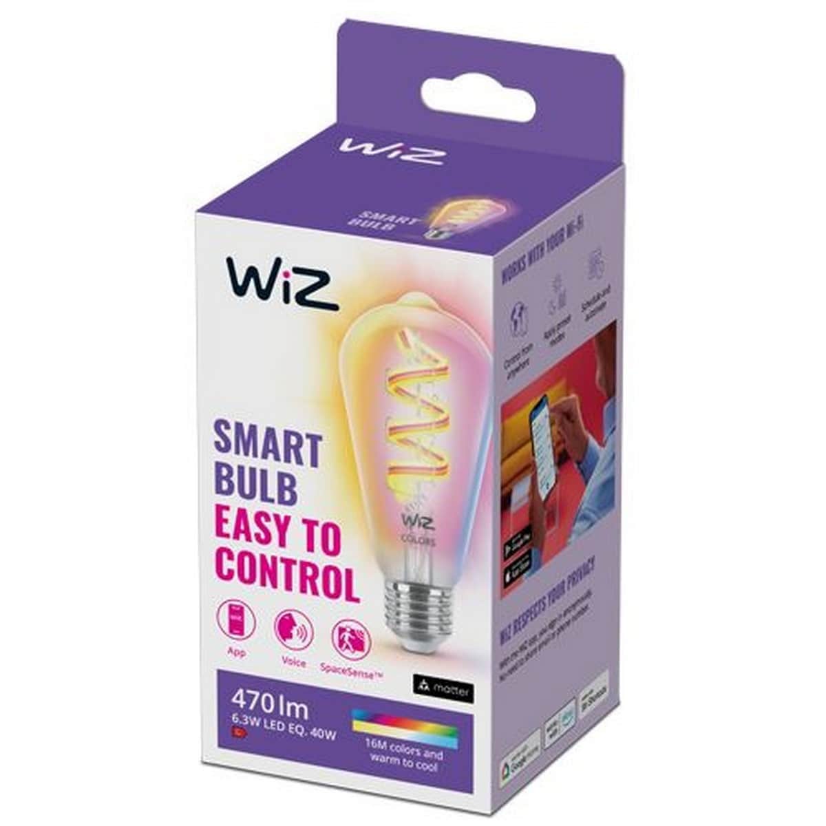WiZLâmpada Inteligente Regulável com Filamento WIZ E27 822 40W 470 lm - RGB com Wi-Fi e BluetoothAdicionar