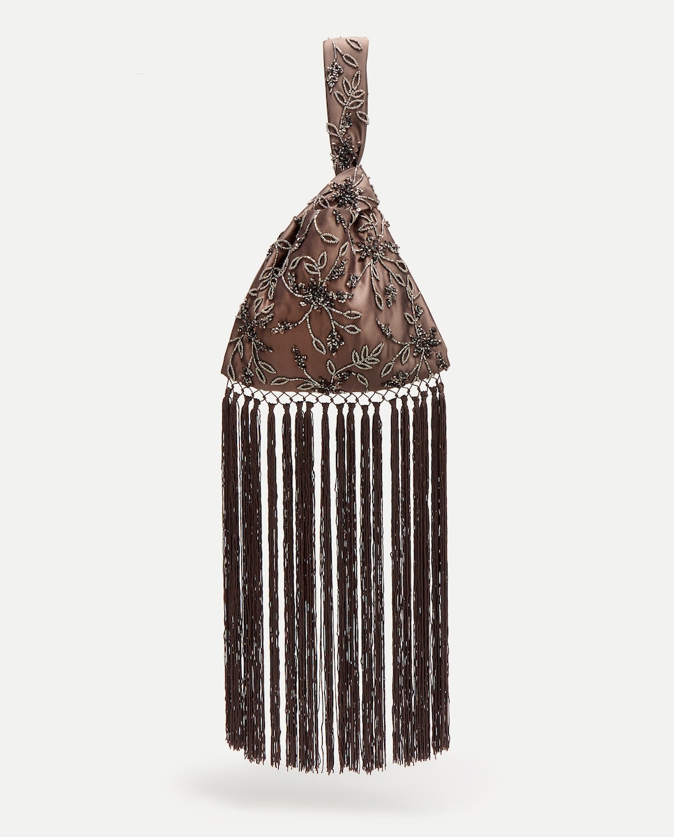 Mala Tipo Saco com Pedraria e Franjas