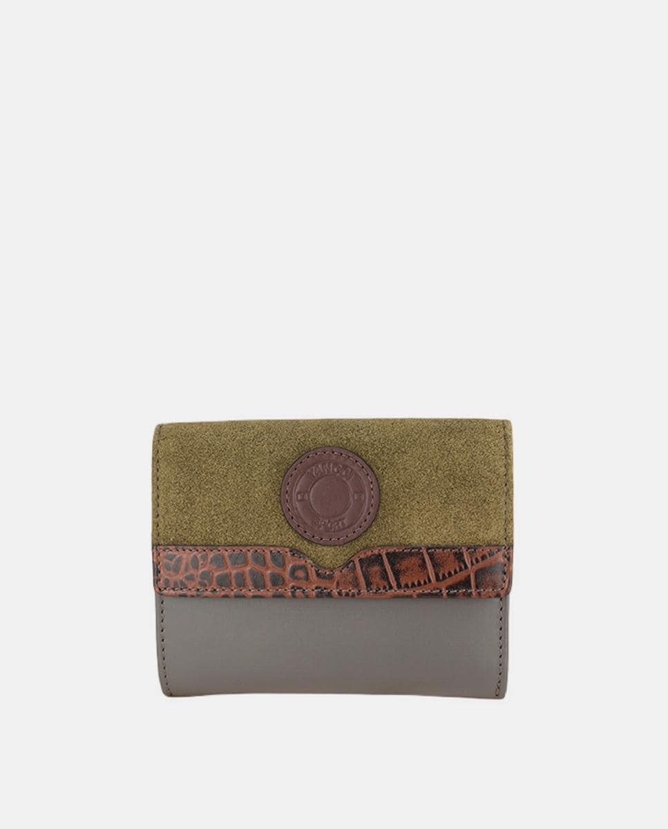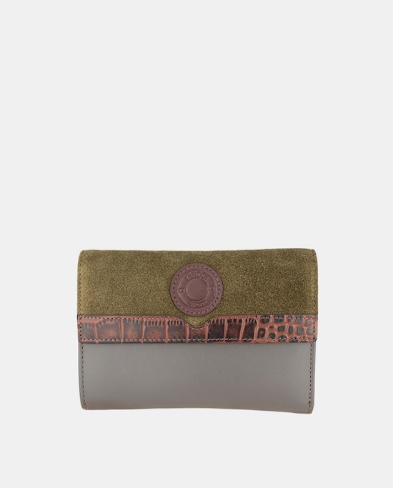 NovoYancciPorta-Moedas Médio com Secção para Notas, em Pele Combinada com Croute e com Tira de Efeito Croco no Final da Aba - Vermelho/Castanho2 CoresAdicionar