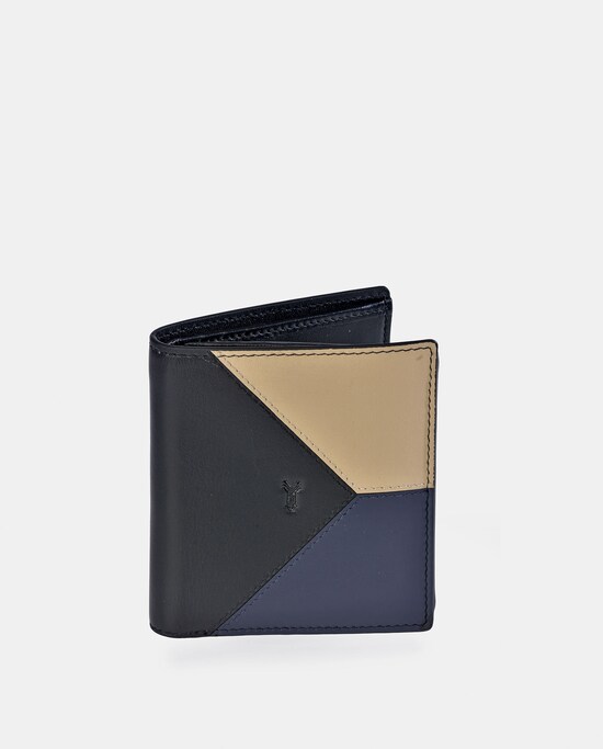 Carteira Tipo Americano em Pele com Aba e Porta-Moedas Interior - Preto