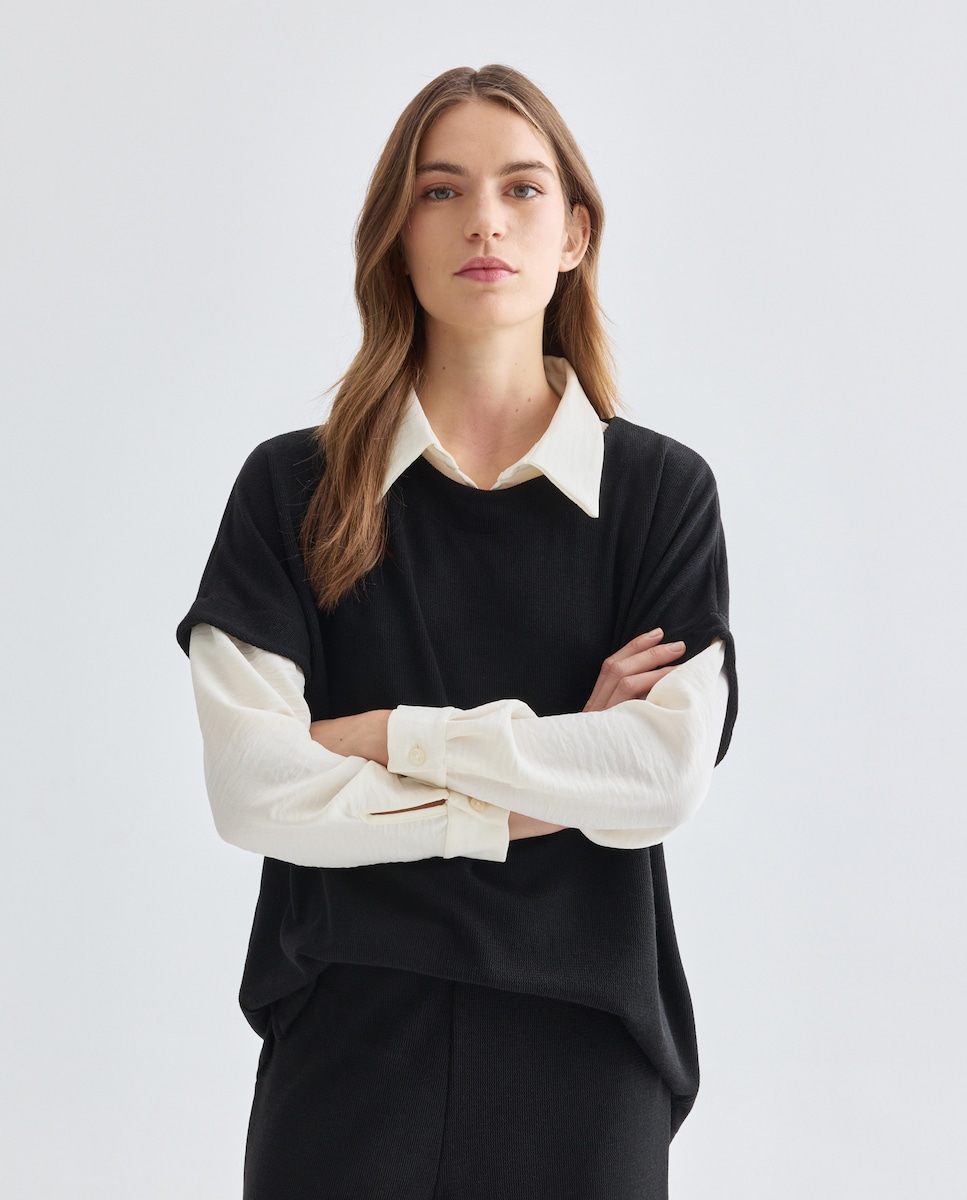 Camisola de malha lisa com manga comprida
